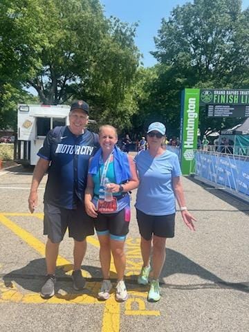 Yesterday, my daughter, Katy Krieg, completed her fourth triathlon, a “Half Ironman” (her second half ironman) at the Grand Rapids Triathlon 2025. A half ironman consists of a 1.2-mile swim, a 56-mile bike ride, and a 13.1-mile run. She finished in 6 hours, 41 minutes and 35 seconds. Her splits were 46:05 (swim), 3:18.14 (bike), 2:36.02 (run), with 11:16 transition time. She finished 22 of 34 females. Most importantly she finished with a smile, which is much better than her first half ironman three years ago, when she asked me to never let her do this again.